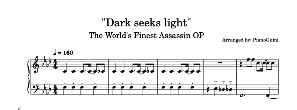 The World's Finest Assassin OP - "Dark seeks light" - Piano Sheet Music