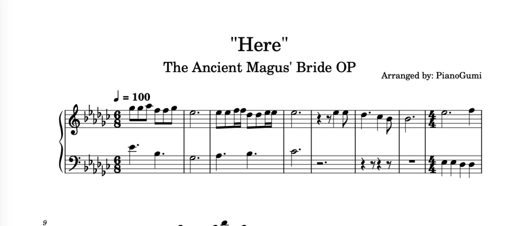 The Ancient Magus' Bride OP - "Here" - EASY Piano Sheet Music