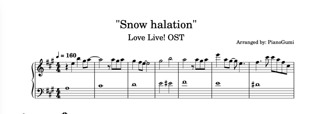 Easy piano arrangement of [full] Love Live! OST - "Snow Halation".