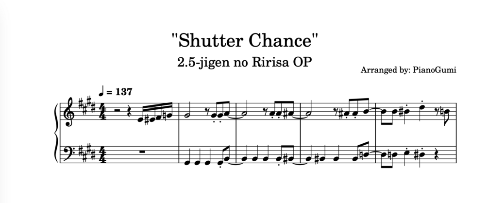 2.5-jigen no Ririsa OP - "Shutter Chance" - EASY Piano Sheet Music