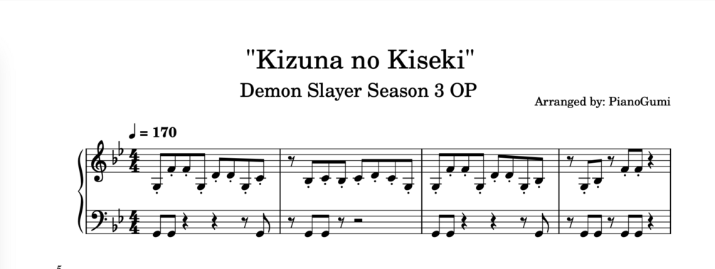 Easy piano arrangement of Demon Slayer Season 3 OP - "Kizuna no Kiseki".