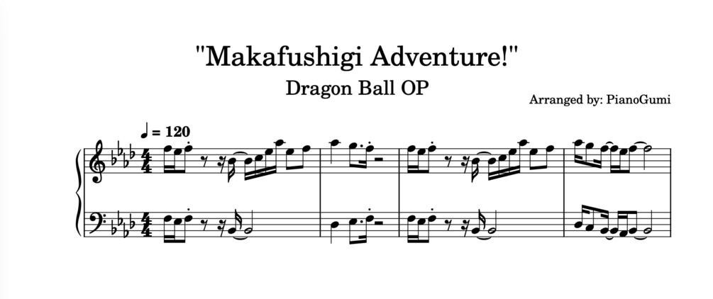 Easy piano arrangement of Dragon Ball OP - "Makafushigi Adventure".