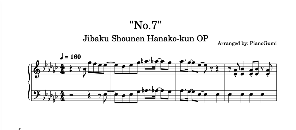 Jibaku Shounen Hanako-kun OP - "No.7" - Piano Sheet Music