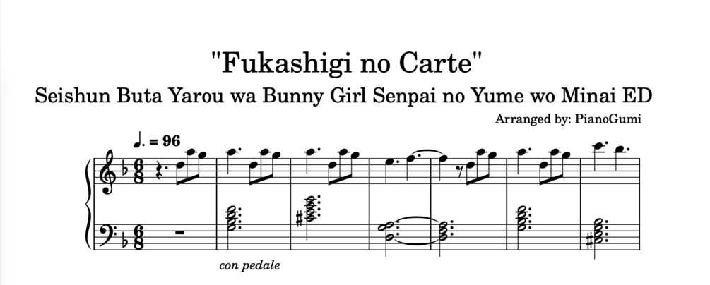 Medium/Intermediate piano arrangement of "Fukashigi no Carte" - Seishun Buta Yarou wa Bunny Girl Senpai ED.