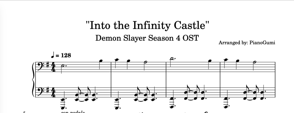 Medium/Intermediate piano arrangement of Demon Slayer Season 4 Ep 8 OST - "Into the Infinity Castle".