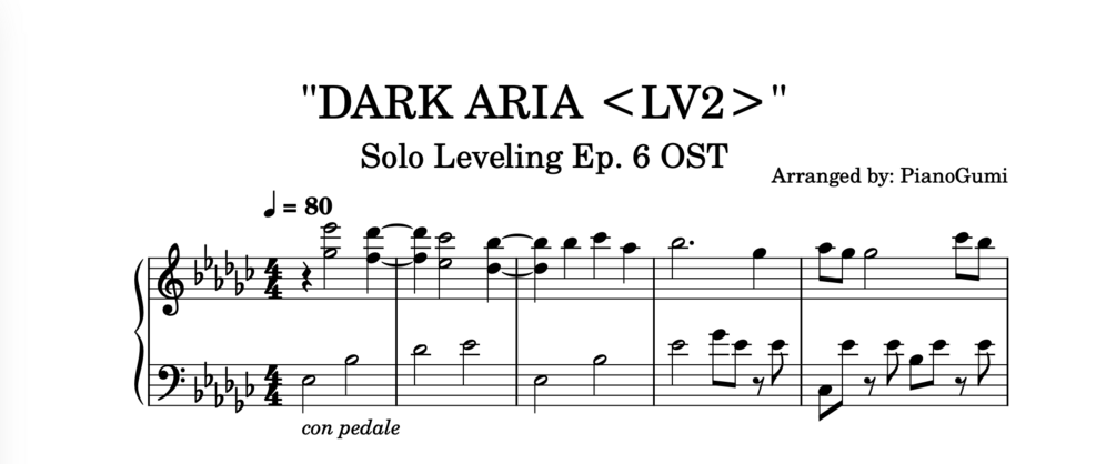 [full] Solo Leveling Ep. 6 OST - "DARK ARIA <LV2>" - INTERMEDIATE Piano Sheet Music