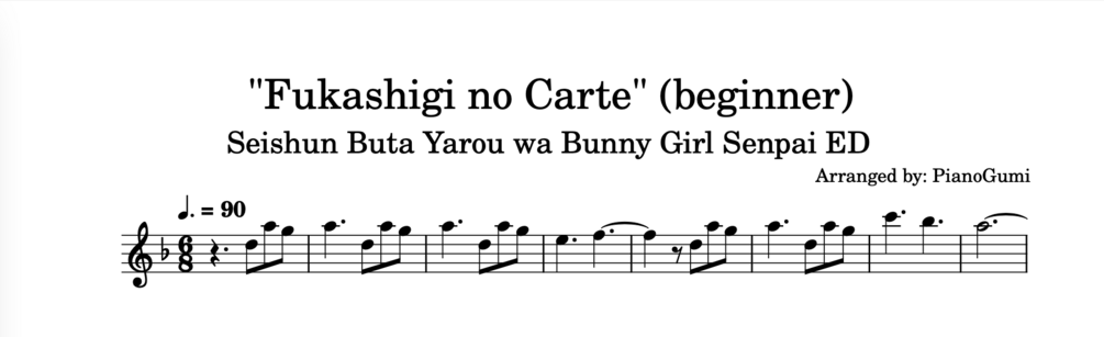 Beginner piano arrangement of Seishun Buta Yarou wa Bunny Girl Senpai ED - "Fukashigi no Carte".