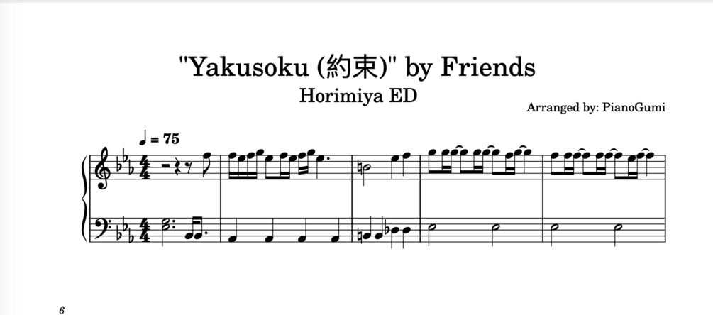 Easy piano arrangement of Horimiya ED - "Yakusoku (約束)" by Friends (フレンズ).