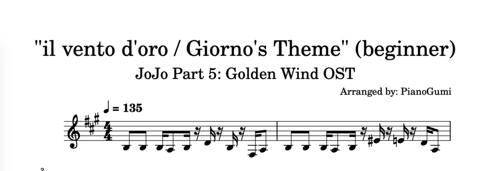Beginner piano arrangement of [full] JoJo Golden Wind OST - "Giorno's Theme / Il vento d'oro".
