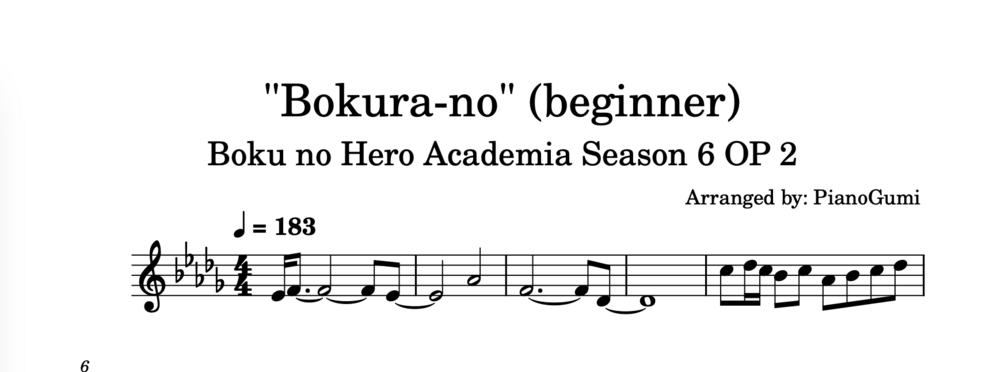 Boku no Hero Academia Season 6 OP 2 - "Bokurano" - BEGINNER Piano Sheet Music