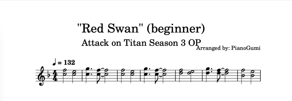 Attack on Titan Season 3 OP - "Red Swan" - BEGINNER Piano Sheet Music