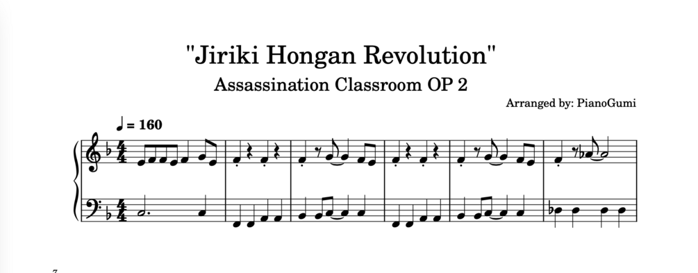 Assassination Classroom OP 2 - "Jiriki Hongan Revolution" - Piano Sheet Music