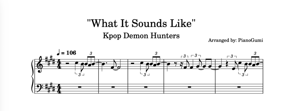 Medium/Intermediate piano arrangement of [full] Kpop Demon Hunters - "What It Sounds Like".