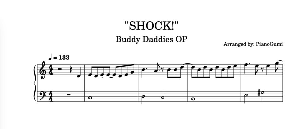 Buddy Daddies OP - "SHOCK!" - EASY Piano Sheet Music