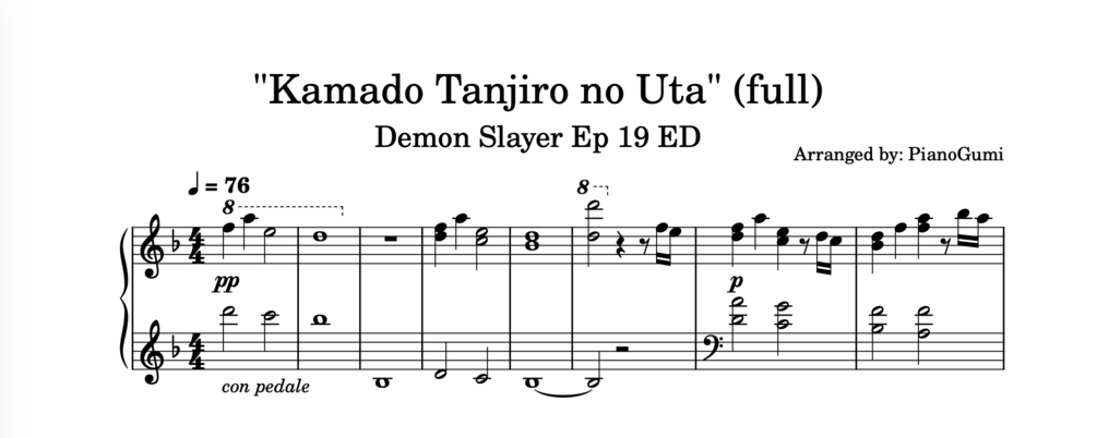 [full] Demon Slayer Ep 19 ED - "Kamado Tanjiro no Uta" - INTERMEDIATE Piano Sheet Music