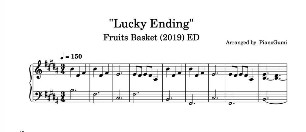 Fruits Basket ED - "Lucky Ending" - Piano Sheet Music