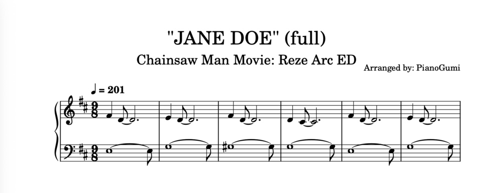 Easy piano arrangement of [full] Chainsaw Man Movie: Reze Arc ED - "JANE DOE".