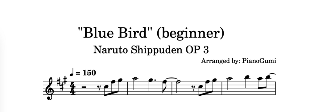 Beginner piano arrangement of Naruto Shippuden OP 3 - "Blue Bird".