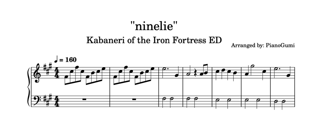 Easy piano arrangement of Kabaneri of the Iron Fortress ED - "ninelie".