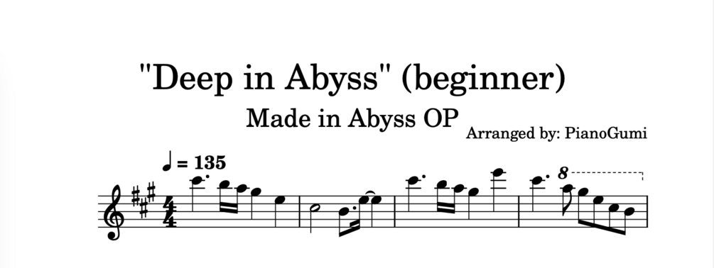 Made in Abyss OP - "Deep in Abyss" - BEGINNER Piano Sheet Music