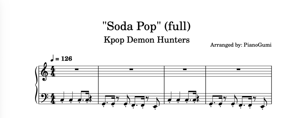 Easy piano arrangement of [full] Kpop Demon Hunters - "Soda Pop'.