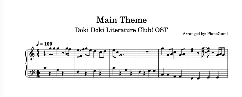 Doki Doki Literature Club - Main Theme - EASY Piano Sheet Music