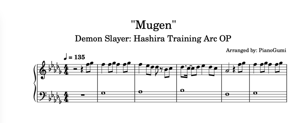 Easy piano arrangement of Demon Slayer Season 4 OP - "Mugen".