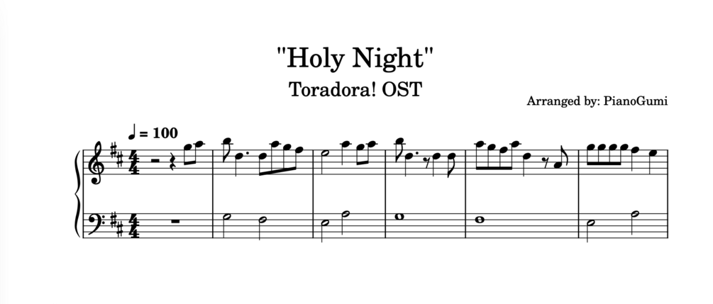 [full] Toradora! OST - "Holy Night" - Piano Sheet Music